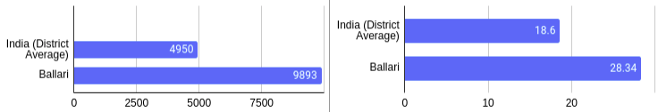 - Area: National Average area per district is 4950 km2 and the Ballari district’s area is 9893 km2[4]. If the area of administration is vast, it will cause delays in implementing welfare schemes and projects. Refer to figure 3.